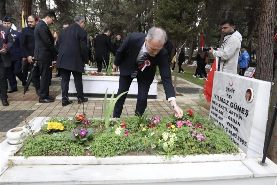 Törenler sabah 09.30’da Hastane Mezarlığı içerisinde bulunan Garnizon Şehitliğinde başladı. Kaymakam Eren Arslan, Belediye Başkanı Alper Taban, siyasi parti temsilcileri ve ilçe protokolünün yoğun katılım gösterdiği törende, Kaymakamlık, Garnizon Komutanlığı ve İnegöl Belediye Başkanlığı çelenkleri tören alanına sunuldu. Ardından yapılan dualar ve okunan Kuran-ı Kerimlerle devam eden anma töreninde, başta Çanakkale şehitleri olmak üzere tüm şehitlerimiz rahmet ve minnetle anıldı. Tören sonrası şehitlerimizin kabrine karanfil bırakıldı.