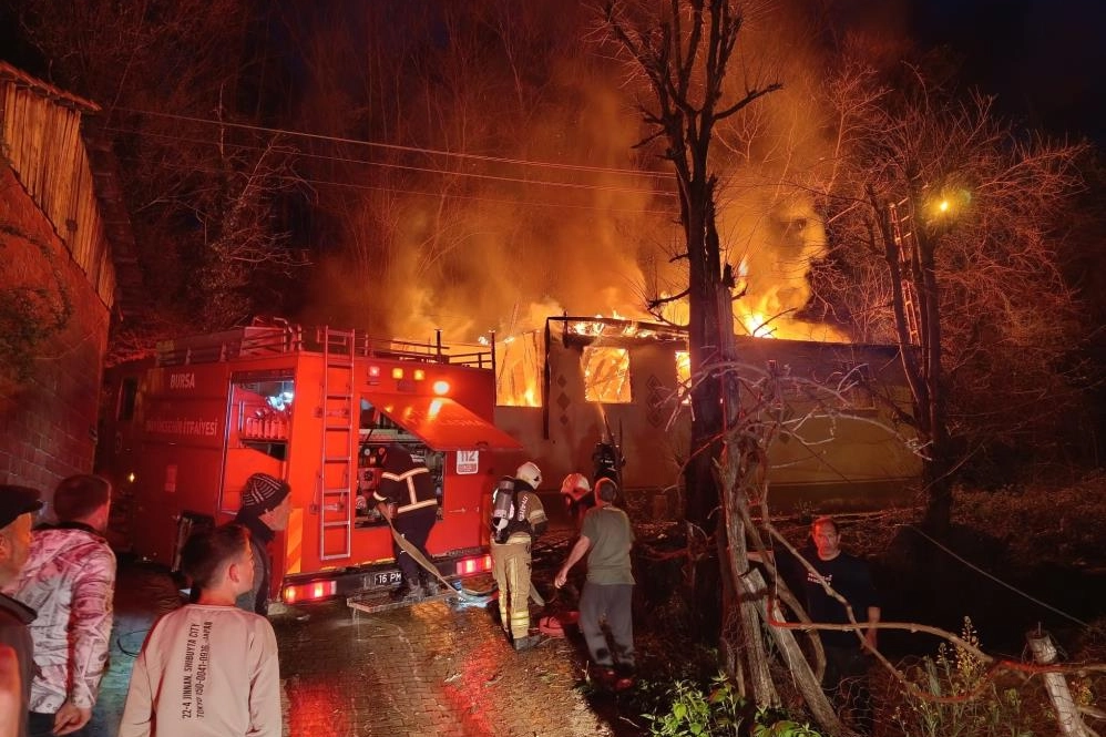 Bursa'nın İnegöl ilçesinde tek katlı ev, çıkan yangın sonucu kullanılamaz hale geldi.