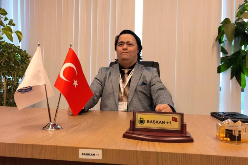 Bursa'nın İnegöl ilçesinde down sendromlu 29 yaşındaki Can Ahmet Haymana, 3 yıl önce belediyenin sosyal sorumluluk projesi kapsamında Belediye Başkanı Alper Taban'ın makamının yanında oluşturulan "Başkan +1" ofisinde görevler üstleniyor. Hafta içi her gün takım elbisesini giyip belediyeye gelerek sorumluluk ve misyon üstlenen Haymana, toplantılara katılmasının yanı sıra esnafları da denetliyor. Belediye personeline moral veren Haymana, personeller tarafından çok seviliyor. Can Ahmet Haymana, "Belediye Başkanımız Alper Taban'ı çok seviyorum, o da beni seviyor. Herkese hizmet için çalışıyoruz. İnegöl Belediyesinde 3 yıldır çalışıyorum." dedi. Belediye Başkanı Alper Taban ise, "Can Ahmet İnegöl Belediyesi personelimiz kendisi, sağ olsun İnegöl belediye başkanı olmayla ilgili talebini bizlere iletmişti. Bize sağ olsun ailesiyle görüştük, o görüşme neticesinde de İnegöl Belediyesi'ne her gün düzenli olarak gelmesini sağladık. Tüm ekip arkadaşlarımızla uyumlu çalışıyor, ahenkli çalışıyor. Kendisi tabi özellikle ilk geldiği zamanda bizde merak içindeydik. Acaba bir uyum olacak mı ya da bizim bir faydamız olacak mı? Ya da onda bir gelişme olacak mı gibi. Birbirimizi gözlemledik ve bugün itibarıyla çok mutluyum yaklaşık 3 yıl oldu. Çok projeler yapıyoruz tabi ama bu bizim için en anlamlısı oldu diyebilirim. Her gün düzenli bir şekilde takım elbisesini giyiyor, hazırlığını yapıyor. Belediyemize geliyor, arkadaşlarımızla gördükleriyle selamlaşıyor. Yani bizden bir farkı yok ve günün sonunda bize de ciddi anlamda bir görev insanı olduğunu hissettirdi. İşte ne görev verilirse yerine getiriyor. İlk önce tabi onu biraz daha özel kalem gibi değerlendirmiştik kurumumuzda sonrasında da artı bir başkan olarak görevlendirmiş olduk. Sağ olsun o da bunun hakkını vererek o bilinçle, o gayretle çalışmaya devam ediyor. Can Ahmet'i çok seviyoruz, çok değer veriyoruz. Bizim kıymetlimiz. İnşallah o kendisi istediği sürece bu ilişkiyi karşılıklı götüreceğiz." ifadelerini kullandı.