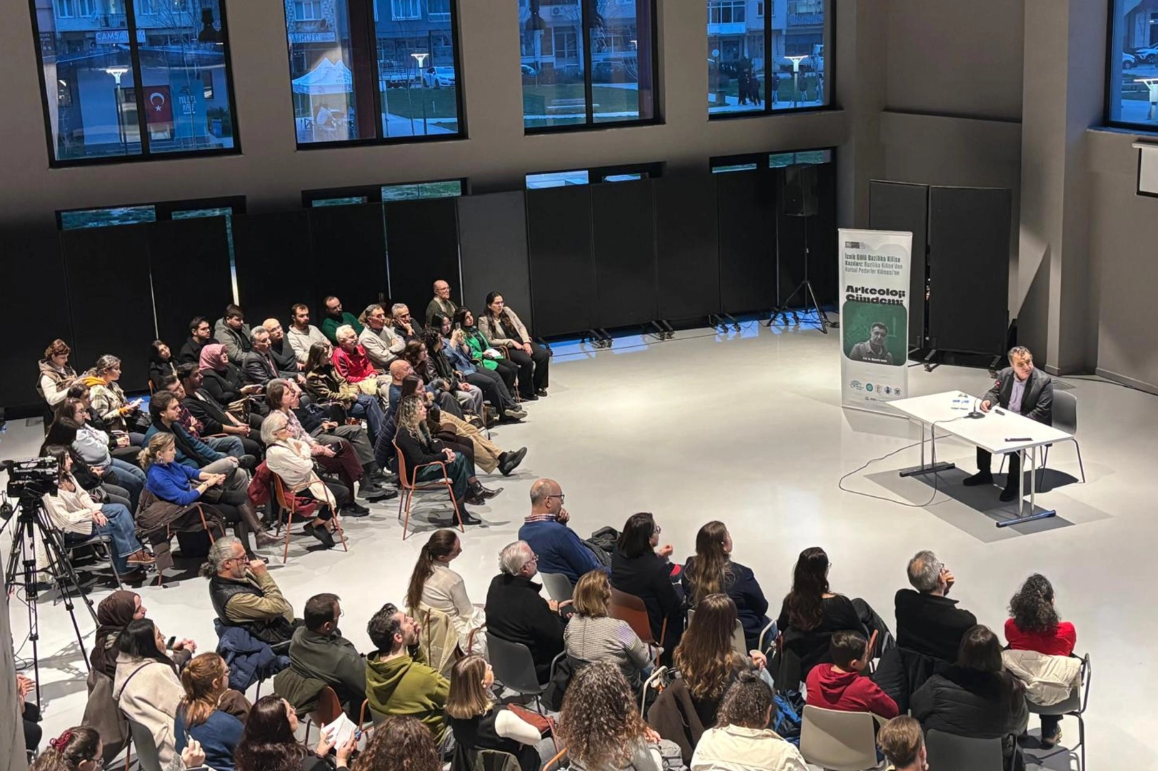 Nilüfer Belediyesi’nin tarih ve arkeoloji meraklılarını bir araya getirdiği Pancar Deposu’ndaki Arkeoloji Gündemi söyleşileri devam ediyor. Bu ayki buluşmada Bursa Uludağ Üniversitesi Arkeoloji Bölümü Anabilim Dalı Başkanı Prof. Dr. Mustafa Şahin, 2014 yılında bir hava fotoğrafıyla tesadüfen keşfedilen İznik Gölü’ndeki tarihi bazilikayı ve kentin tarihsel katmanlarını anlattı. Etkinlikte, su altındaki yapının Hristiyanlık dünyası için bir dönüm noktası sayılan Birinci İznik Konsili ile olan bağı güncel veriler eşliğinde ele alındı.