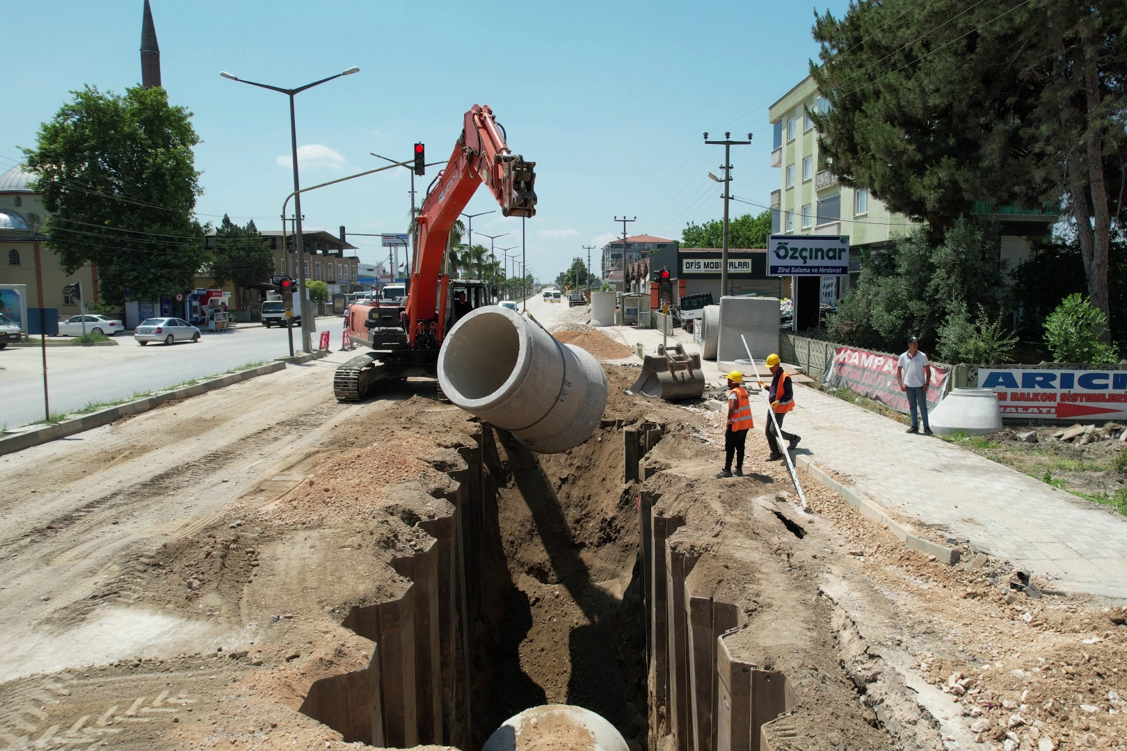 Kent merkezinde olduğu gibi 17 ilçenin de sağlıklı bir altyapıya kavuşması için yoğun mesai harcayan Bursa Büyükşehir Belediyesi, BUSKİ tarafından sürdürülen Karacabey’deki altyapı çalışmalarına hız verdi. Avrupa Yatırım Bankası’ndan (AYB) sağlanan 50 milyon Euro’luk krediyle İnegöl, Mustafakemalpaşa ve Karacabey ilçelerinde eş zamanlı olarak sürdürülen altyapı yenileme çalışmalarında önemli bir mesafe alındı. Karacabey’in Sırabademler Mahallesi Şehit Kemal Köse Sokak ve 14 Eylül Caddesi’nde tamamlanan kanalizasyon, yağmur suyu ve içme suyu hattı imalatlarının ardından hemen üst yapı imalatlarına başlandı. Çalışma kapsamında alt yapının tamamlandığı bölgelerde 10 bin metrekarelik alanda parke taş uygulaması gerçekleştirildi.