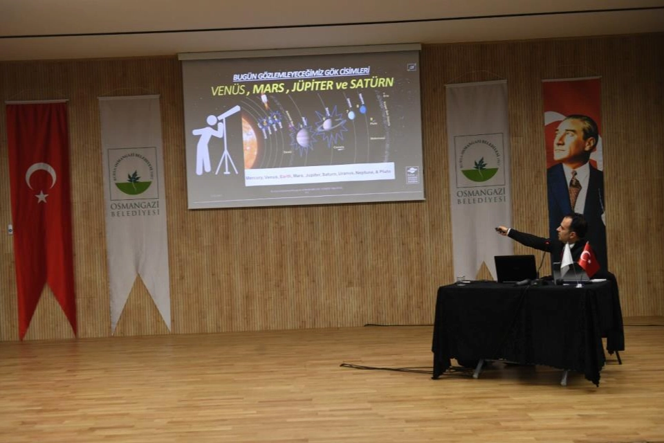 Osmangazili bilimseverlerle 8'inci kez bir araya geldiklerini ifade eden Bilim ve Amatör Astronomi Kulübü Yönetim Kurulu Başkanı Cem Özkan, "Bu buluşmamızda Ramazan ayının anlamıyla özdeşleştireceğimiz Karagöz üzerinden bir tema kurduk. Bir özlemi ifade etmek istiyoruz. Karagöz'ün yaşadığı dönemde Batı'da henüz matbaa keşfedilmemişti ve coğrafi keşifler yapılmamıştı. Ancak o dönemde toplumumuz dünya ölçeğinde en ileride toplumlardan biriydi. Bizler bu etkinlikte halkı bilimle buluştururken bu soruyu düşündürmek istedik. Diyoruz ki keşke Karagöz, bilim insanı olsaydı. Bu temayla bir etkinlik kurguladık. Geleneksel olarak bir Karagöz gösterisi, gerçekleştirdik. Bu gösteride de bilim temalı bir oyun sergiliyoruz. Hayali Tayfun Özeren, sanatçımız bu konuda bize destek oldu. Yaptığımız gözlem ilgili gezegenlerin bilgisini arkadaşlarımız paylaştı. Sunumların ardından bilim meydanı olmasını istediğimiz Osmangazi Meydanı'nda teleskopla vatandaşların katılımıyla gözlem yaptık" dedi. "Bilimin oluşmasında etkili olan şehirler Anadolu'dan çıkmıştır"