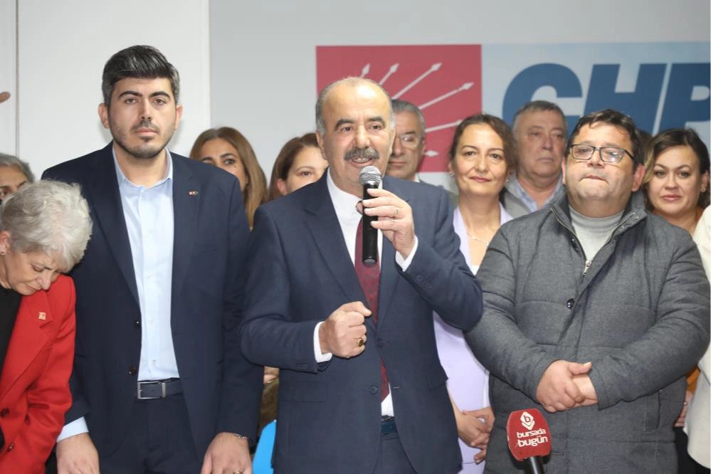 Mudanya’da üçüncü dönem görev yapmak için resmi aday adaylığı başvurusunu yapan Hayri Türkyılmaz'ın basın toplantısına eşi Gülbahar Türkyılmaz, partililer, meclis üyeleri ile Mudanyalılar katıldı.
