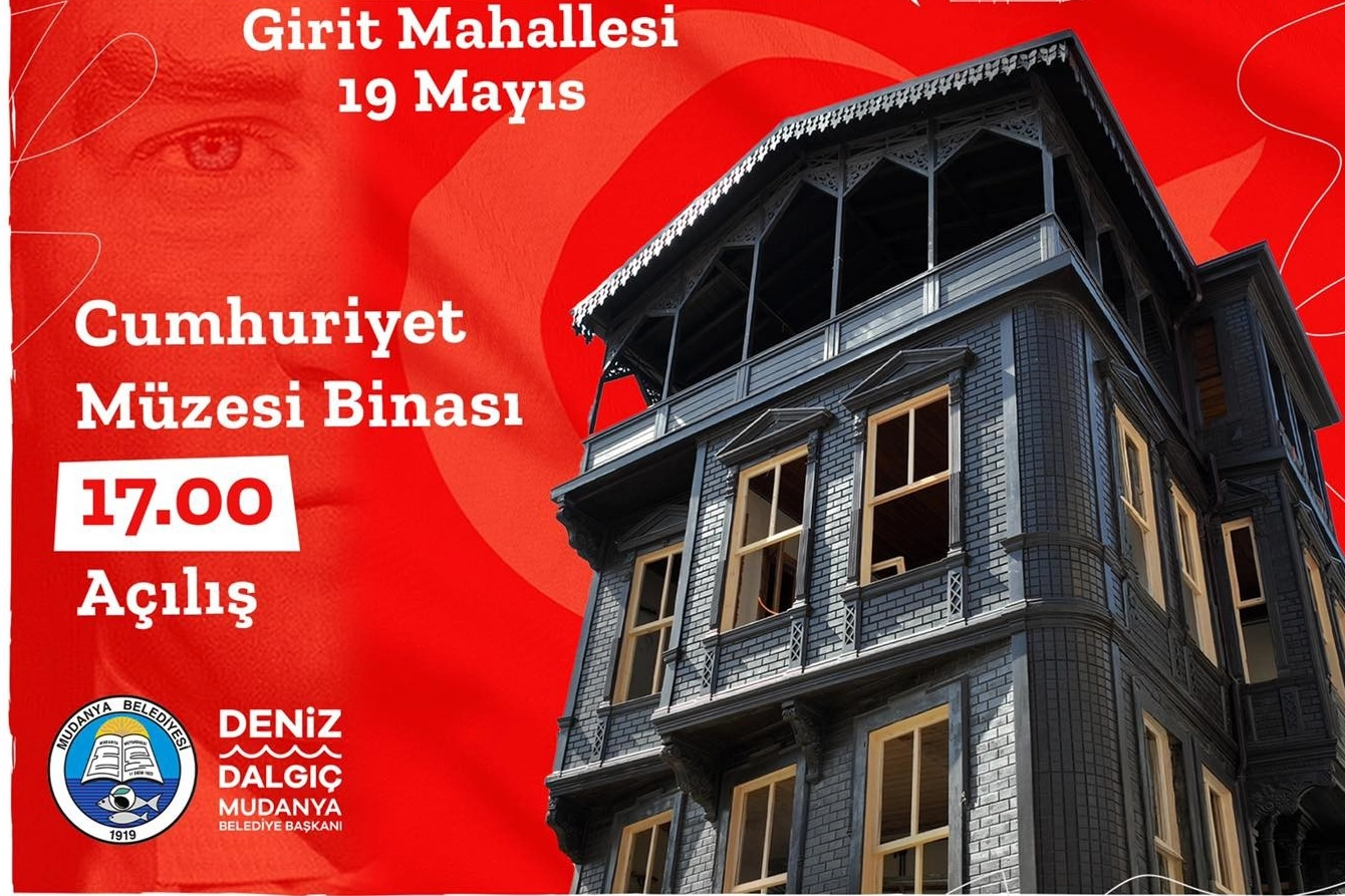 Mudanya Belediyesi, 19 Mayıs Atatürk’ü Anma, Gençlik ve Spor Bayramı kapsamında, kentin tarihi belleğini Cumhuriyet değerleriyle buluşturacak özel bir açılışa ev sahipliği yapacak. Girit Mahallesi’nin sembol yapılarından biri olan ve restorasyon çalışmaları tamamlanan ahşap konağın, “Cumhuriyet Müzesi” olarak hayata geçmesi için açılışı yapılacak.
