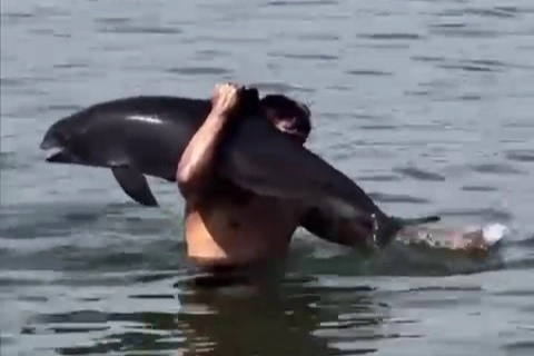Bursa'nın Mudanya ilçesinde bir vatandaş, ölmüş yunus balığını sırtında taşıdı. İlginç anlar saniye saniye amatör kamera ile kaydedildi.
