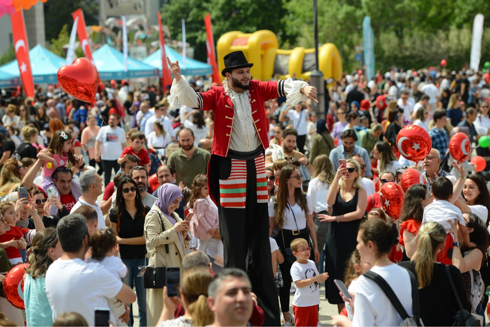 Şenlik alanı tahta bacak, jonglör ve palyaço gösterileriyle renklenirken; tırmanma dağı, bungee run, engelli parkur gibi oyun alanlarıyla çocuklar enerjilerini atacak. Etkinlikte, çocukları kitaplarla buluşturacak Gezici Kütüphane de yer alacak.