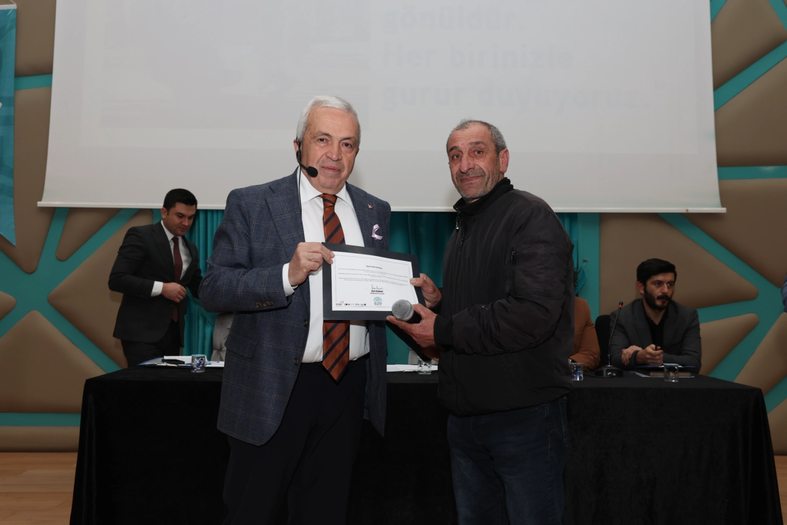 Toplantının en anlamlı anlarından biri ise Park ve Bahçeler çalışanı Erdal Demirtaş’a verilen teşekkür belgesi oldu. Görev yaptığı parkta yağmur sonrası ıslanan kaydırağın çocuklar tarafından kullanılamadığını fark eden Demirtaş, kendi üzerindeki kıyafetle kaydırağı silerek çocukların güvenle oynamasını sağladı.