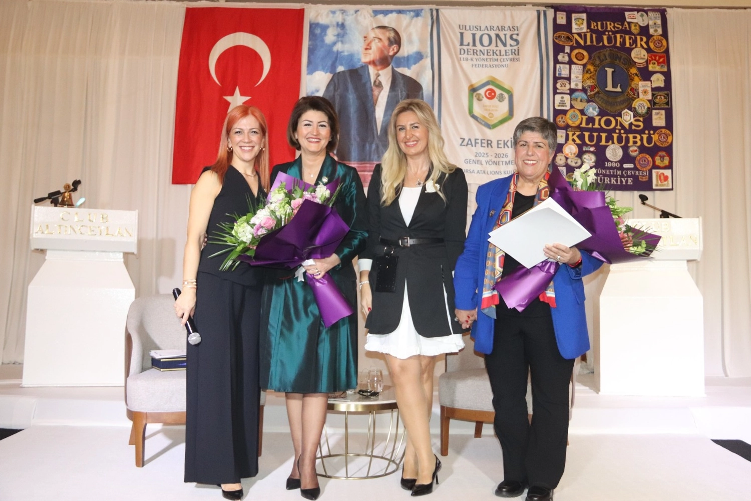 Gecenin sonunda Bursa Nilüfer Lions Kulübü Başkanı Oya Baykal, Kalbim Seninle Derneği Başkanı Sebla Pamir Güler ile BUİKAD Başkanı ve Bursa Nilüfer Lions Yönetim Kurulu Üyesi Şeyda Şençayır, Türkiye Kadın Dernekleri Federasyonu Başkanı Canan Güllü’ye çiçek ve plaket takdiminde bulundu.