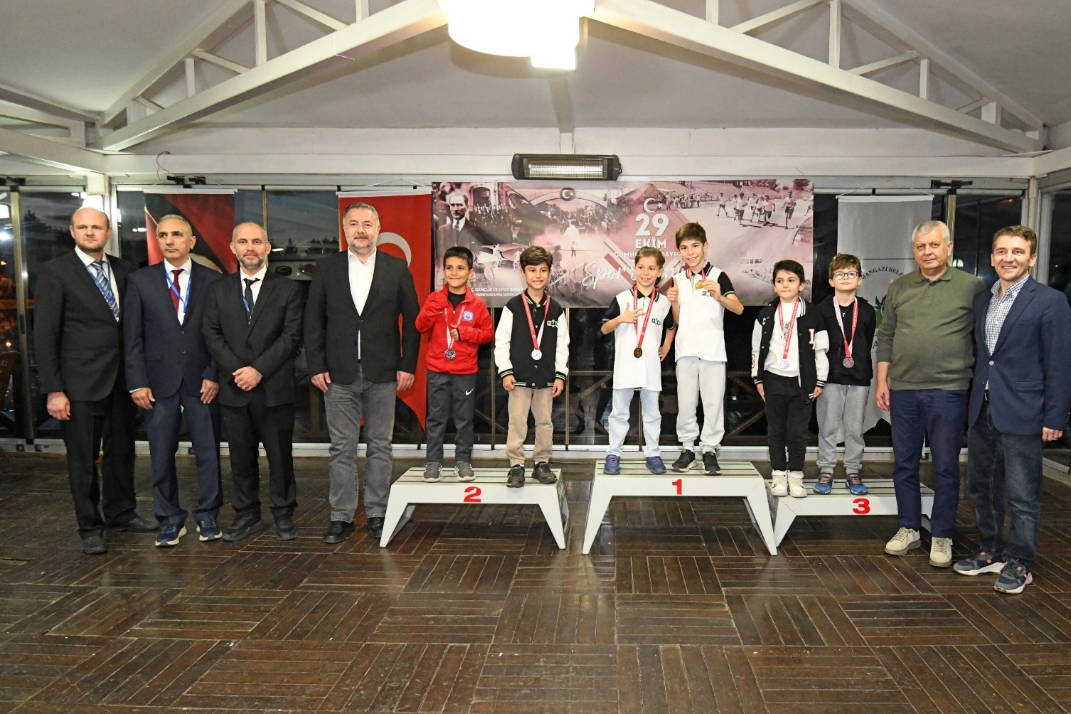 Osmangazi Belediyesi Gençlik ve Spor Hizmetleri Müdürlüğü ev sahipliğinde Sukaypark Tesisleri’nde gerçekleşen 29 Ekim Cumhuriyet Bayramı Satranç Turnuvası, kıyasıya mücadelelere sahne oldu. 2025–2026 satranç sezonunun ilk turnuvası olma özelliğini taşıyan organizasyonda toplam 64 sporcu ter dökerken, 8 yaş ve altı kategorisinde Bersis Arda Güvercinci birincilik, Ömer Efe Akman ikincilik, Aziz Koç üçüncülük kürsüsüne oturdu. Sporcuların büyük heyecan yaşadığı turnuvanın 10 yaş ve altı kategorisinde ise Bersey Arslan Güvercinci birincilik, Kaan Uras Katip ikincilik, Yiğit Barış Evci üçüncülük başarısı yakaladı.
