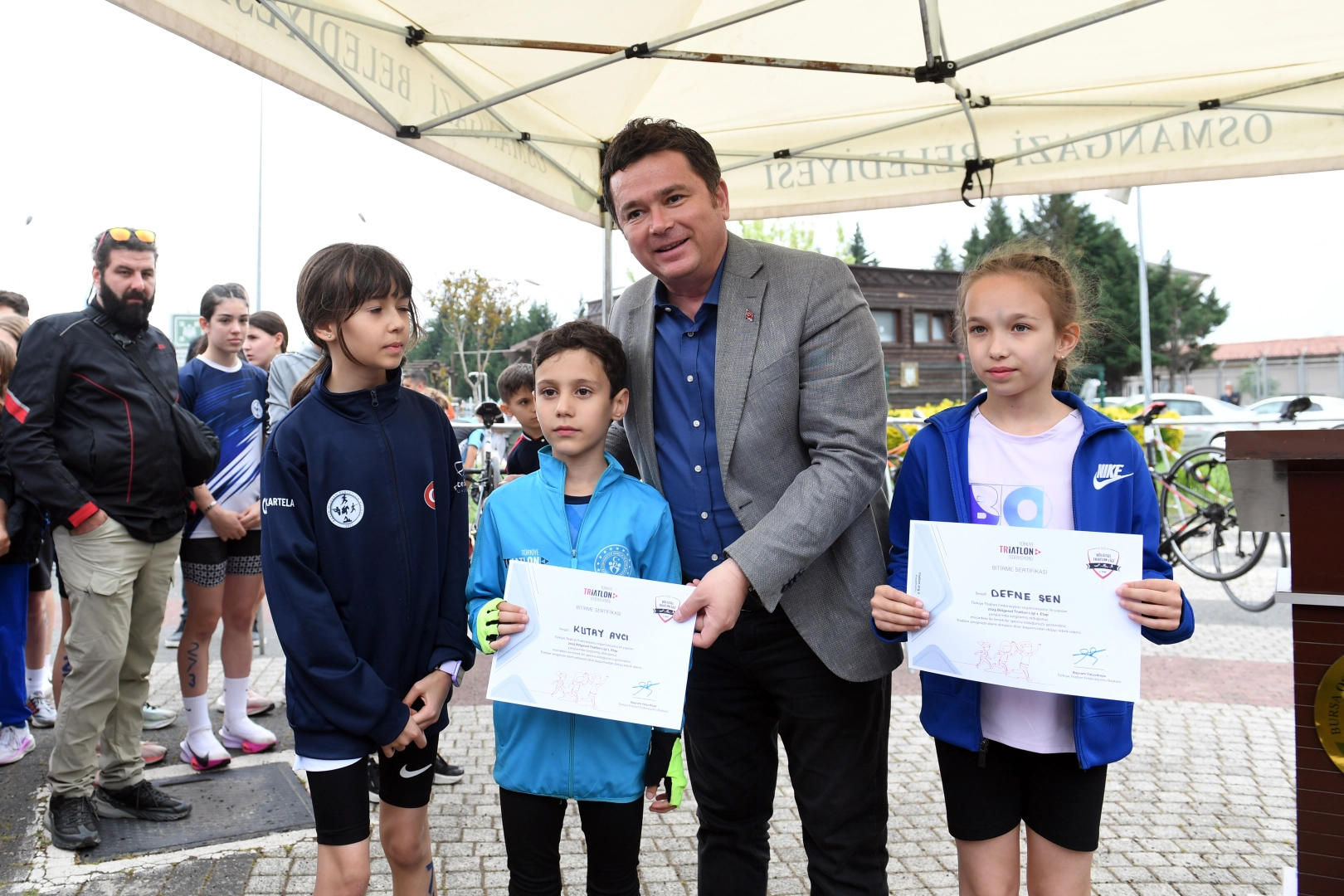 Türkiye Triatlon Federasyonu tarafından düzenlenen ve Osmangazi Belediyesi’nin desteklediği yarışlara katılan sporculara başarı sertifikalarını Osmangazi Belediye Başkanı Erkan Aydın ve Osmangazi Belediyespor Kulübü Yönetim Kurulu Başkanı Fatih Karayılan takdim etti. Tüm sporcuları tebrik eden Başkan Aydın, “Türkiye Triatlon Federasyonu Bölgesel Ligi 4. Bölge 1. Etap Duatlon Müsabakası, 4 ilden toplam 103 sporcunun katılımıyla gerçekleşti. Yarışlara katılan gençlerimiz, sportif rekabeti deneyimleme fırsatı buldu. İnanıyorum ki sportif yaşamlarında daha büyük başarılara imza atacaklar. Osmangazi Belediyesi olarak her zaman sporun, sporcunun ve gençlerimizin yanındayız” dedi.