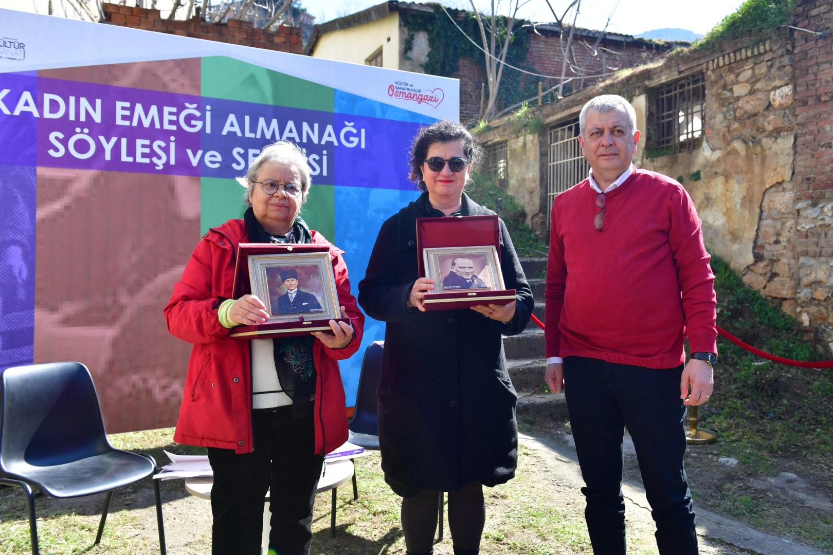 Söyleşinin sonunda Osmangazi Belediye Başkan Yardımcısı Mutlu Esendemir, günün anısına Necla Akgökçe ve Feryal Saygılıgil’e teşekkür plaketi takdim etti. Daha sonrasında Esendemir, katılımcılar ile birlikte sergiyi gezdi.