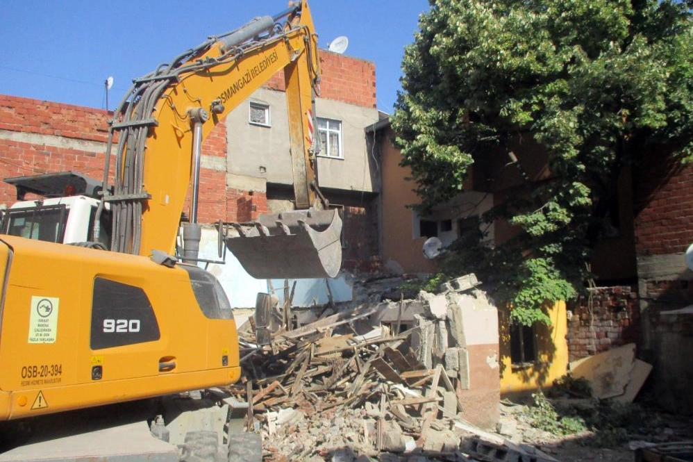 Suç örgütlerinin yuvalandığı, aynı zamanda çevre kirliliğine yol açan metruk binalar, mahallelerde huzuru bozmasının yanı sıra vatandaşların can ve mal güvenliği adına da tehlike arz ediyor. İlçedeki metruk binaların oluşturduğu riskleri ortadan kaldırmak ve çevreye zarar veren unsurlara engel olmak amacıyla harekete geçen Osmangazi Belediyesi Yapı Kontrol Müdürlüğü ekipleri, son olarak Fatih Mahallesi’nde bulunan bir metruk binayı yıktı. Yıkımın ardından ortaya çıkan molozlar, belediye ekipleri tarafından kamyonlara yüklenerek yıkım alanı temizlendi.