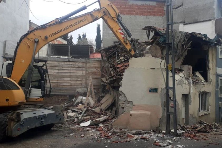 Osmangazi Belediyesi, halkın can ve mal güvenliğini tehdit etmesinin yanı sıra madde bağımlılarının mesken tutması nedeniyle de yoğun şikayetlere konu olan metruk binaların yıkımını sürdürüyor. Mahallelerde yaşayan halkı oldukça tedirgin eden metruk binalar, Yapı Kontrol Müdürlüğü ekipleri tarafından durum tespiti yapılıp, yasal işlemlerinin tamamlanmasının ardından yıkılıyor. Vatandaşlardan gelen talep ve şikayetleri dikkate alan belediye ekipleri, İvazpaşa Mahallesi’nde yer alan metruk binayı yıkmak için harekete geçti. Emniyet ve sağlık açısından risk oluşturan metruk bina, iş makinesi ile yıkıldı. Yıkımın ardından ortaya çıkan molozlar, belediye ekipleri tarafından kamyonlara yüklenerek yıkım alanı temizlendi.