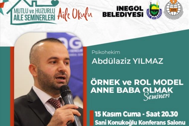 İnegöl Belediyesi’nin Aile Hayatı İyileştirme Derneği (AHİD) iş birliğinde düzenlediği “Aile Okulu” eğitimleri bu yıl 4’üncü kez gerçekleştiriliyor. Her yıl onlarca genç çiftin katılarak sağlam temelli evliliklere adım attığı organizasyonda; toplumun temelini oluşturan ailenin önemi, mutlu ve huzurlu aile olabilmenin yöntemleri, çocuk yetiştirmenin püf noktaları gibi çeşitli eğitim ve seminerler yer alıyor. Aile Okulu seminerleri 8 hafta boyunca her hafta Cuma akşamı 20.30’da Sani Konukoğlu Konferans Salonunda gerçekleştiriliyor. Aile Okulunun bu haftaki konuğu Psikohekim Abdülaziz Yılmaz olacak. 15 Kasım Cuma akşamı 20.30’da Sani Konukoğlu Konferans Salonunda İnegöllülerle buluşacak Yılmaz, “Örnek ve Rol Model Anne Baba Olmak” konulu seminerde anlatımlarda bulunacak. Aile Okulu programı kapsamında yapılacak diğer seminerler ve konuklar ise şöyle: 22 Kasım’da Eğitimci, İlahiyatçı Hasan Basri Balcı “Huzurlu Aile ve Fetih Nesli”, 29 Kasım’da Eğitimci İsmail Güler “Toplumun Çekirdeği Aile”, 06 Aralık’ta Eğitimci, İlahiyatçı Sami Yıldız “Aileyi Yıkan Sebepler” semineri gerçekleşecek.