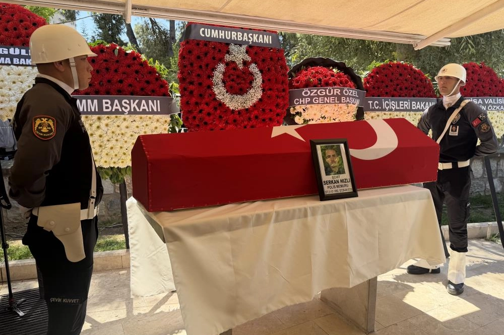 İzmir'de meydana gelen trafik kazasında görev başındayken şehit düşen 34 yaşındaki polis memuru Serkan Hızlı, son yolculuğuna memleketi Manisa'nın Akhisar ilçesinde gözyaşları ve dualarla uğurlandı.