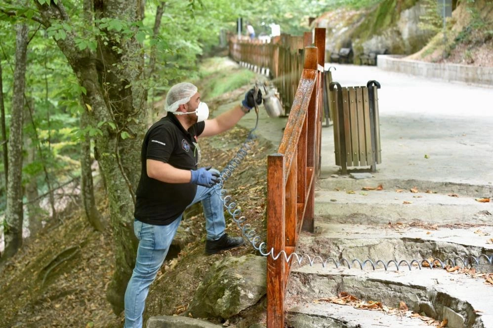 Her mevsim ziyaretçilerine ayrı bir görsel şölen sunan Mustafakemalpaşa’nın Suuçtu Şelalesi seyir terasında genel bakım çalışmaları başladı.