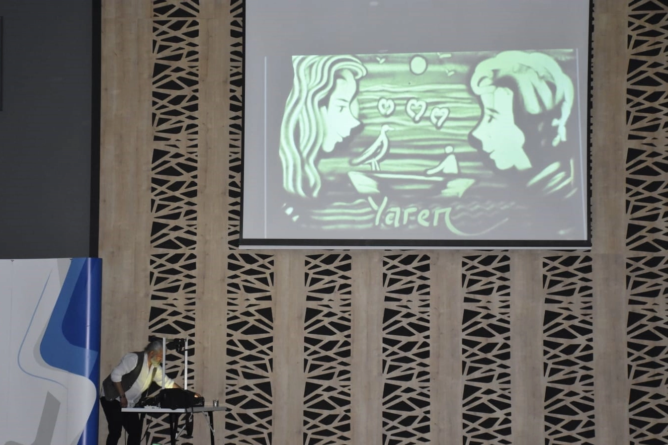 Sessizliğin içinde estetikle buluşan bu güzel gösteri, programa gelen katılımcılardan tam not aldı. Kumla şekillenen hikâyeler, izleyicileri hem görsel hem de duygusal bir yolculuğa çıkardı. Sanatçı, performansında Yaren Leylek ve Adem Amca, Atatürk, Türkiye haritası ve Türk bayrağı gibi simgelerle; kimi zaman doğayı, kimi zaman insan portrelerini, kimi zaman da kitapların büyülü dünyasını resmetti. Bu etkileyici gösteri, izleyiciler tarafından dakikalarca alkışlandı. "Her kum tanesi bir hikâye anlatır"