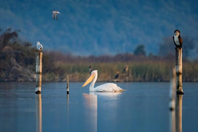 Gün boyu avlanma dışında en çok kış öncesi tüylerini düzenlemekle ilgilenen tepeli pelikanlar, 3 buçuk metreye varan kanat açıklığıyla Türkiye'nin en kocaman kuşları olarak biliniyor. Sürü halinde avlanan tepeli pelikanları görüntüleyen doğa fotoğrafçısı Alper Tüydeş, sosyal medyadaki paylaşımında; "Gölün ortasında veya ulaşamayacağı derinlikteki balığı kıyıya sürerler. Bunu kanatlarını suya vurarak çıkardıkları seslerle ürküterek yaparlar. Sonra sırayla arkadan öne geçerek 1 metreye varan uzunlukta gaga ve boyunlarını suya sokup kese şeklindeki alt gagasını su ve balıkla doldururlar. Bu kuşlar Türkiye'nin Marmara ve Ege bölgesinde yoğunlukta yaşamaktadır. Gediz, Uluabat, Manyas ve Kocaçay'dan başka bu saydığım özelliklerde faydalanabileceği bir sulak alanları yoktur" dedi.