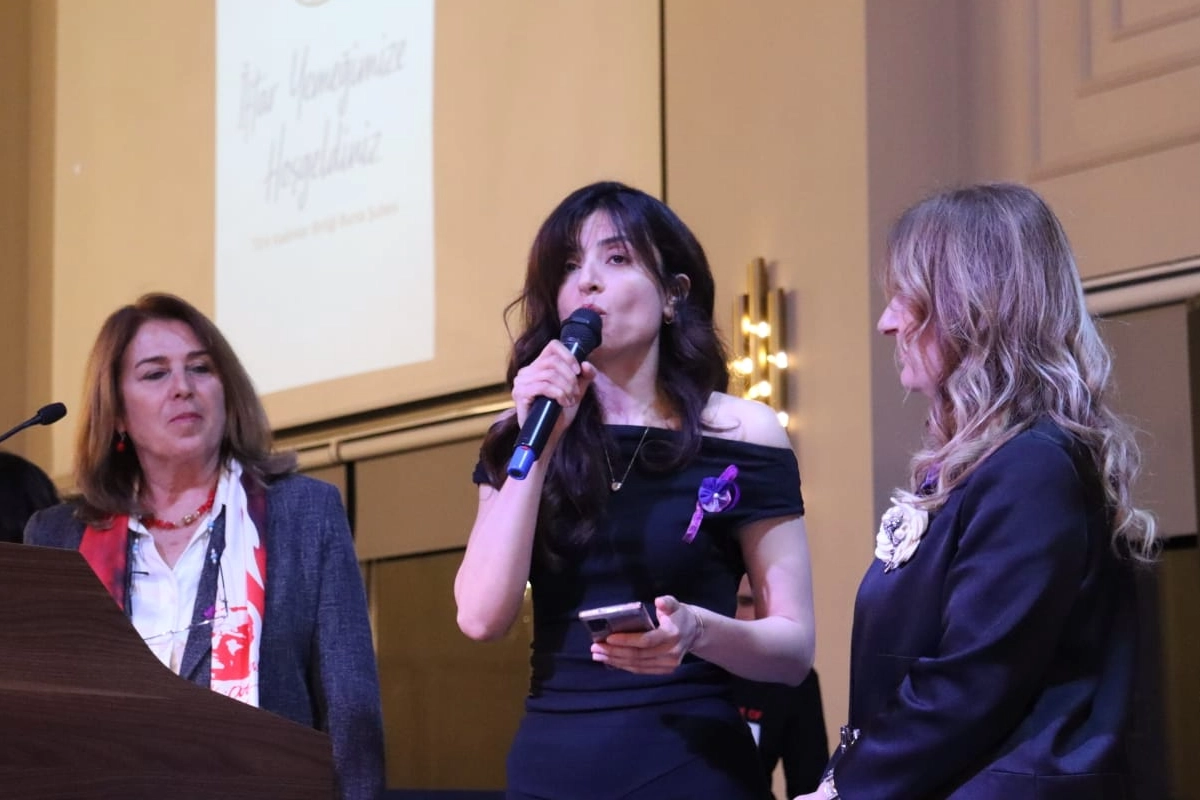 Gecenin en anlamlı anları, TKB Bursa’nın Hatay’da hayata geçireceği yeni projenin sorumlusu olan Hataylı depremzede Endüstri Mühendisi Özge Çakır’ın kürsüye gelmesiyle yaşandı. Hataylı kadınların selamını Bursa’ya getiren Çakır; "Bahur, zahter ve defne kokusunu, baharın umudunu getirdim" sözleriyle salonu derin bir sessizliğe sevk etti. Bir şehri binaların değil, bilinçli insanların ve güçlü kadınların ayağa kaldıracağını vurgulayan Çakır’ın konuşması, katılımcılar tarafından ayakta alkışlandı.