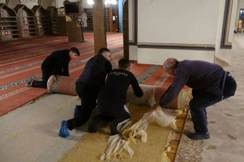 Bursa'nın sembollerinde olan tarihi Ulucami'nin eskiyen halıları 12 sene sonra değiştirildi. Halıları ise Bursa Ticaret ve Sanayi Odası (BTSO) ve Ankara Ticaret Odası (ATO) temin etti. Yaklaşık 3 bin metrekare halı, kılınan yatsı namazının ardından değiştirildi. Ulu Cami'nin eski halıları ise Azerbaycan ve ihtiyacı olan camilere verilecek. Ecdat yadigarı olduğu kadar; gelecek nesillere bırakılacak bir emanet niteliği taşıyan, inanç turizmi açısından önemli konumda bulunan Ulu Cami, ziyaretçilerini kendine hayran bırakıyor. Osmanlı Devleti'nin dördüncü hükümdarı Yıldırım Bayezid tarafından 1396-1399 yıllarında yaptırılan abidevi eser, erken dönem Osmanlı sanatının en önemli örneği, Türk ve İslam dünyasının da nadide camileri arasında yer alıyor. Ulu Cami Onarım Donanım ve Bakım Derneği Başkanı Hilmi Şanlı, "Evliya Çelebi'nin tabiri ile Bursa'nın Ayasofya'sı olan Ulucami'deki yeniliklerimize devam ediyoruz. Taban halılarını yenileyerek 2023 yılını karşılamayı düşünüyoruz. Emeği geçen ve bize 3 bin 200 metrekare halıları özel olarak dokuyarak temin eden Ankara Ticaret Odası Başkanı Rıfat Hisarcıklıoğlu ve Bursa Ticaret ve Sanayi Odası Başkanımız İbrahim Burkay'a teşekkür ediyorum. Türk İslam Alemi adına tüm emeği geçenlere teşekkür ediyorum" dedi. Ulu Cami'nin kullanılabilir olan halılarının Azerbaycan'a ve ihtiyacı olan camilere gönderileceğini belirten Şanlı sözlerine şöyle devam etti, "Dilekçe vermek suretiyle Ulu Cami'nin eski halılarını Vakıflar Bölge Müdürlüğümüz aracılığıyla Azerbaycan ve ilçelerimizde imkanı olamayan camilerimize vereceğiz. Müftülüklere dilekçe veren camilerimize ihtiyacı kadar halı verilecek. Ankara Ticaret Odası ve Bursa Ticaret ve Sanayi Odası birlikte yapılan halı ihalesini alan firma gelip burada ölçümlerini yaptı. Bu dokumayı özel olarak Ulu Cami için yaptılar. Renk seçimine bir heyet karar verdi. İnşallah uzun yıllar kullanılır" diye konuştu.