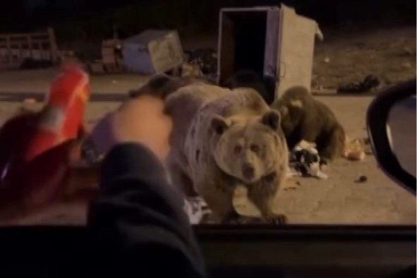 Milli Park yetkilileri de hayvanlara her gün yiyecek bırakıp karınlarını doyuruyor. Ancak bazı vatandaşlar ayı ailesinin yanına gelip yiyecek verirken tehlikeli anlar yaşıyor. Sucuk ziyafeti çektiği anne ayının gazabına uğrayan bir maceracı o anları kayda aldı. Ayının arabaya saldırdığı anlar yürekleri ağıza getirdi.