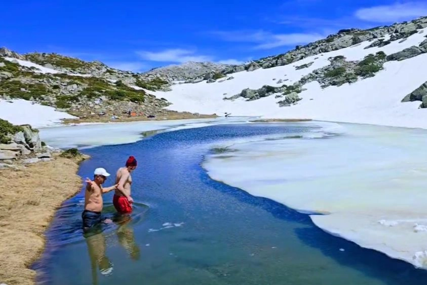 Bursalı dağcılar, Mayıs ayında Uludağ'ın buz tutan gölünde yüzdü. Yaklaşık 2200 metre yükseklikte bulunan, eşsiz manzarasıyla doğa yürüyüşü yapan grupları kendisine hayran bırakan Saklıgöl'e girenler keyif yaparken; görüntüler izleyenleri üşüttü.