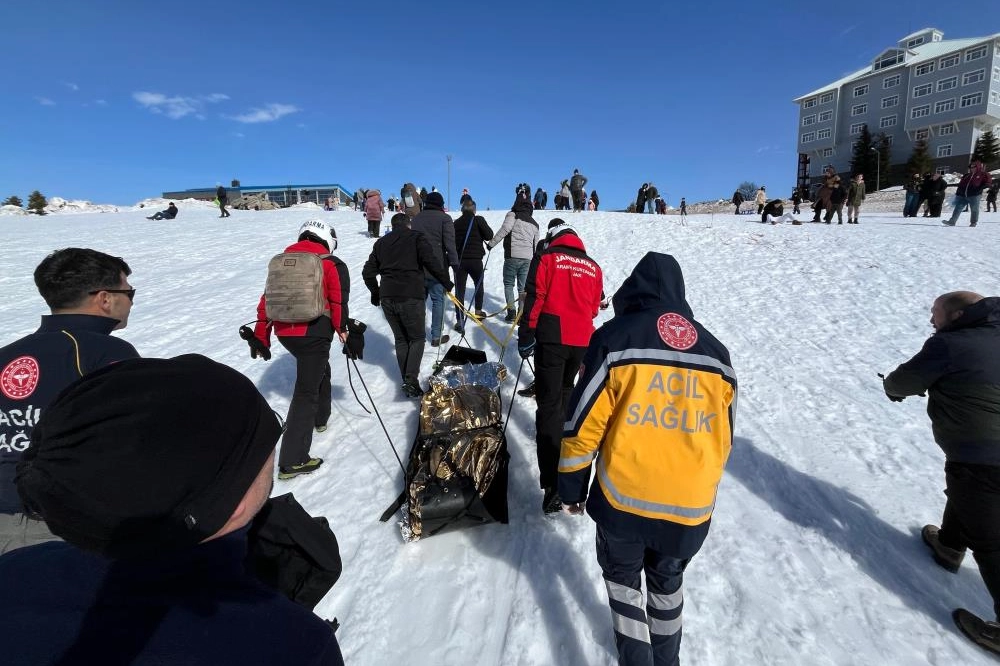 Kış turizminin gözde merkezlerinden Uludağ'da kızakla kayan bir tatilci kontrolünü kaybederek dere yatağına savruldu.