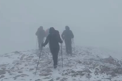 Bursa'da bir grup dağcı Uludağ'da mevsimin ilk karı için zirveye tırmanış gerçekleştirdi. Sezonun ilk karının yağmasıyla Uludağ'ın zirvesinin beyazlara büründüğü dikkat çekti.