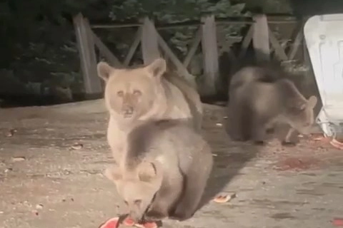 Uludağ sık çam ormanları arasında yüzlerce yabani hayvana ev sahipliği yaparken, Sarıalan bölgesinde karnı acıkan ayı ailesi çöp konteynerlerini karıştırıp yiyecek aradı O anlar orada bulunan vatandaş tarafında kayıt altına alındı. Çöp konteynerında buldukları yiyecekler ile karınlarını doyuran ayı ailesi oradan uzaklaştı.