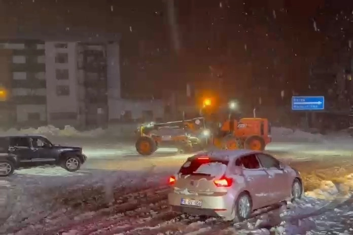 Karayolları ekipleri hem oteller bölgesinde hem de yol güzergahında kar küreme çalışması yapıyor.