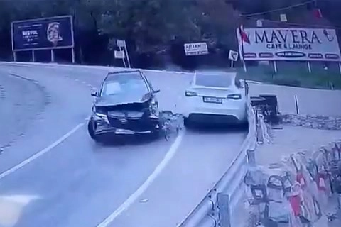 Bursa'da Uludağ yolunda virajları yolun kaygan olması sebebiyle alamayan otomobillerin çarpışma anları saniye saniye kameralara yansıdı.