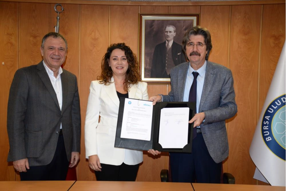 Yer aldığı “Araştırma Üniversiteleri” kategorisinde üst sıralara çıkmayı hedefleyen BUÜ, özel sektör temsilcileriyle nitelikli çalışmalar üretebilmek adına faaliyetlerine devam ediyor. BUÜ yönetimi, üniversite-sanayi iş birliği çerçevesinde tekstil sektöründe hizmet veren Sözal Kimya firmasıyla özel bir protokole imza attı. Araştırma faaliyetlerinin yürütülmesi, akademik ve kültürel değişim programlarının hazırlanmasını içeren sözleşmeye BUÜ Rektörü Prof. Dr. Ferudun Yılmaz ile Sözal Kimya Yönetim Kurulu Üyesi Nuray Sözal imza attı. “Bursa, güçlü bir sanayi altyapısına sahip” Törende konuşan Rektör Prof. Dr. Ferudun Yılmaz, yer aldıkları araştırma üniversiteleri kategorisi içerisinde daha üst sıralara çıkabilmek adına üniversite-sanayi iş birliğine büyük bir önem verdiklerini söyledi. Bursa gibi güçlü bir sanayi altyapısı olan şehirde bilimsel çalışma yürütülebilmesi adına çok değerli fırsatlara sahip olduklarını vurgulayan Prof. Dr. Ferudun Yılmaz, “Araştırma Üniversitesi sıfatıyla iş dünyasının kıymetli temsilcileriyle çok yoğun bir etkileşim ortamı oluşturmaya gayret ediyoruz. Sahip olduğumuz bilimsel deneyim ile sanayicilerimizin pratik deneyimlerini bir araya getirmek ve buradan katma değer sağlayan bir sinerji ortaya çıkarmak istiyoruz. Bunun için de yoğun çaba sarf ediyoruz. Göreve geldiğimiz ilk günden itibaren iş dünyası temsilcileriyle çok sayıda protokol imzaladık. Bugün de yine özel bir protokole imza atacağız. Katkı veren herkese teşekkür ediyor, protokolümüzün hayırlara vesile olmasını diliyorum” şeklinde konuştu.