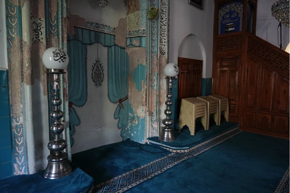 Fatih Sultan Mehmet Han zamanında yapılan ve zaman içerisinde duvarları dökülmeye başlayan Yeni Bezzaz Camii'nin mihrabı onarım bekliyor.