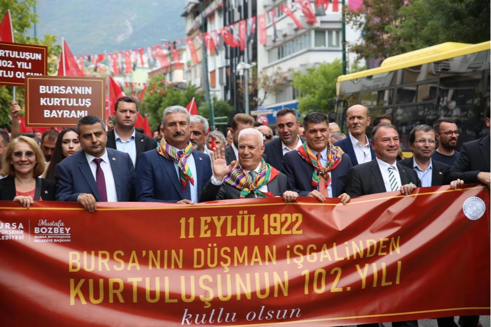 Yürüyüşün ardından açıklamalarda bulunan Başkan Mustafa Bozbey, 102 yıldır aynı coşkuyla yürüdüklerini, Bursa’nın kurtuluşunu ve şanlı zaferi kutlamak için toplandıklarını söyledi. Tam 102 yıl önce Bursa’yı saran özgürlük sevincini yüreklerde hissettiklerini belirten Başkan Bozbey, “Bursa’nın kalbi o günkü gibi özgürce ve hür olarak atıyor. Her sokakta yankılanan, her yürekte büyüyen halkımızın destanını, Bursa’mızın kurtuluşunu kutluyoruz. 8 Temmuz 1920’den 11 Eylül 1922 tarihine kadar işgal altında kaldı Bursa. Bursa’nın işgalini o dönem gazeteler ‘Türk’e verilen azapların en acısı’ diye duyuruyordu. Meclis yastaydı. Kürsü, ‘Puşide-i Siyah’ ile kapatılmıştı. İşgal karanlığı kaplamıştı ülkemizi. İstiklal şairi Mehmet Akif Ersoy, ‘Kıyametler koparmak neydi ey bülbül, nedir derdin?’ diyerek kederle anlatmıştı işgali. Ulu Önderimiz Gazi Mustafa Kemal Atatürk’ün talimatıyla yıllar sürecek mücadele ve direniş başladı. Türk ordusunun kararlı ilerleyişi, Bursa halkının özgürlük sevdasıyla verdiği mücadele sonucu 10 Eylül 1922'de işgal güçleri geri çekilmeye başladı. Haber, Ankara’ya hemen ulaştı. Bu haber ulaşınca kara örtü Meclis kürsüsünden kaldırıldı. Bütün bir ülkenin kurtuluş ümidi, Bursa’da yeşerdi. 11 Eylül sabahı, esaret zincirini kıran güneşe selam durdu Bursa halkı” diye konuştu.