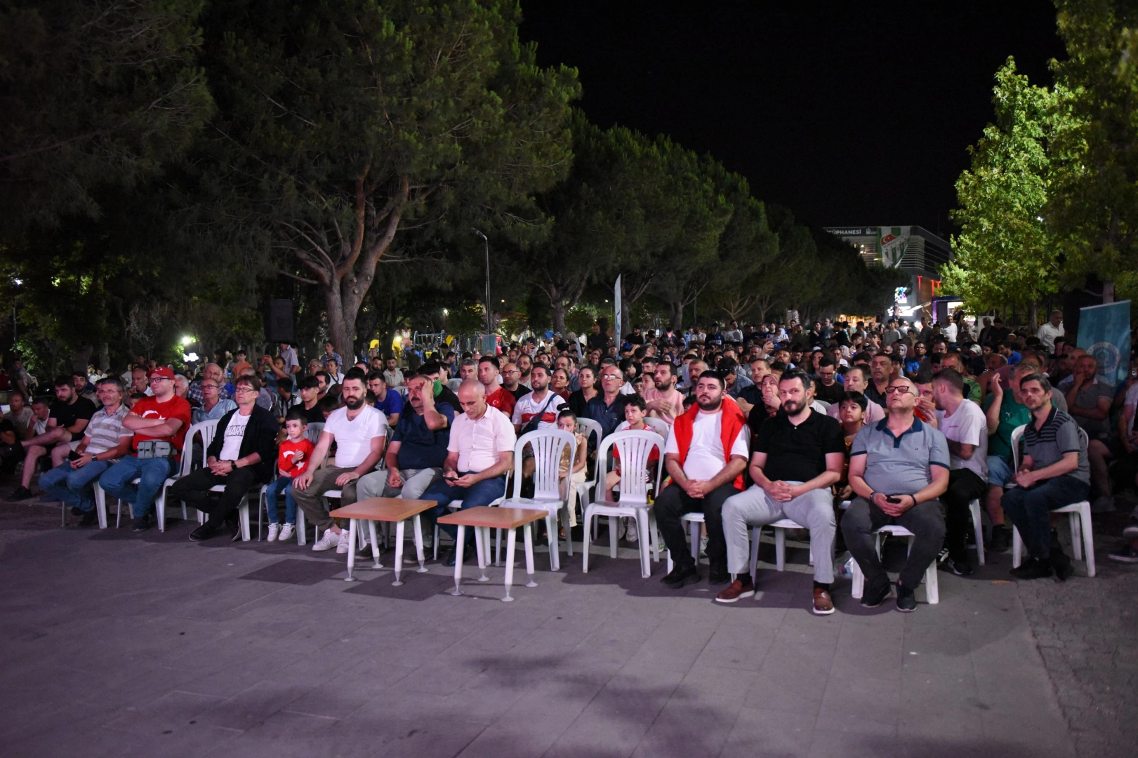 Yıldırım Belediyesi’nin Ahmet Taner Kışlalı Meydanı’nda kurduğu dev ekranda yüzlerce taraftar Türkiye A Milli Futbol Takımı’nın Euro 2024 Avrupa Futbol Şampiyonası’nın üçüncü maçını izledi. Yıldırım Belediye Başkanı Oktay Yılmaz, AK Parti Yıldırım İlçe Başkanı İrfan Akkaya, meclis üyeleri, muhtarlar ve yüzlerce Yıldırımlı ile birlikte Ahmet Taner Kışlalı Meydanı’nda yerini alarak milli maç heyecanına ortak oldu. Ellerindeki Türk bayraklarıyla maçı izleyen Yıldırımlılar, maç sonunda gelen galibiyetle büyük bir coşku yaşadı. Yıldırım Belediye Başkanı Oktay Yılmaz, “Ahmet Taner Kışlalı Meydanı’nda hemşehrilerimiz ile birlikte Çekya galibiyetimizin ve Avrupa Futbol Şampiyonası’nda son 16’ya kalmamızın mutluluğunu ve gururunu yaşadık. Desteğimiz, gönlümüz millilerimizle birlikte” dedi.