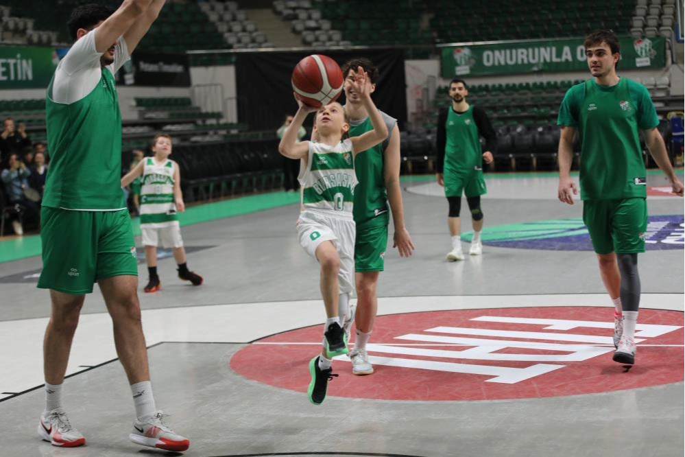 23 Nisan Ulusal Egemenlik ve Çocuk Bayramı kapsamında Bursaspor Basketbol Takımı, Büyükçekmece maçı öncesi altyapıdaki minik sporcularla TOFAŞ Spor Salonu'nda antrenman maçında karşı karşıya geldi. Parkede yaşanan mücadele, zaman zaman sert temposu ve sürpriz anlarıyla dikkat çekti.