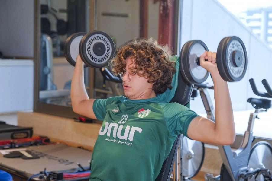 Teknik Direktör Murat Sözkesen gözetiminde gerçekleştirilen antrenmanda Bursasporlu futbolcular "salonda kuvvet" çalışmaları yaptı.
