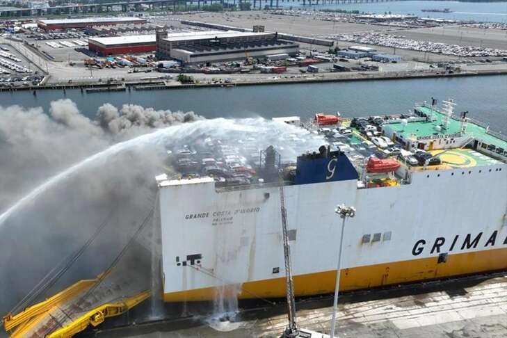Newark İtfaiyesi, ABD ile Afrika arasında araç taşıyan İtalyan bandıralı gemideki yangının dün gece yarısı çıktığı ve sabaha kadar söndürülemediği bilgisini paylaştı.