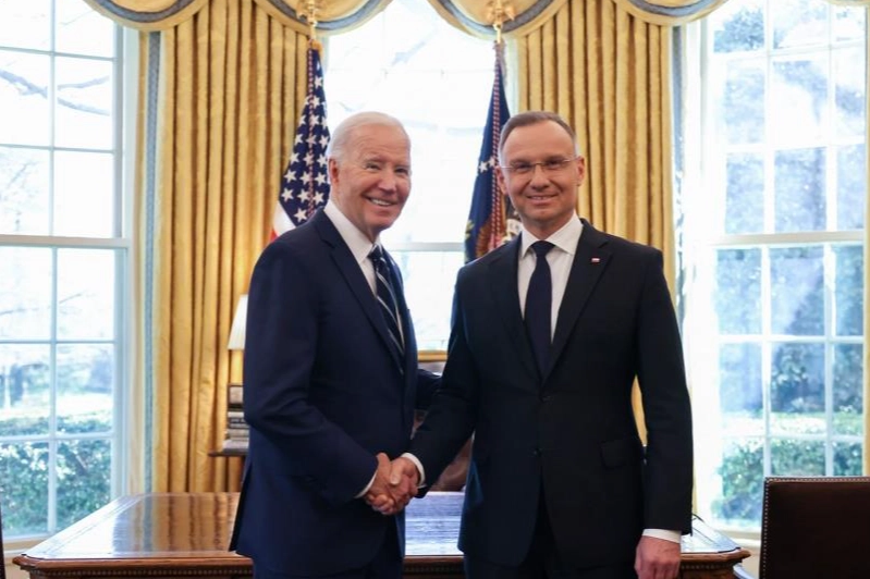 ABD Başkanı Joe Biden'ın daveti üzerine Washington'a gelen Polonya Cumhurbaşkanı Andrzej Duda ve Polonya Başbakanı Donald Tusk Beyaz Saray'da Biden ile buluştu. Polonya'nın NATO'ya üye oluşunun 25. yıl dönümüne denk gelen görüşme öncesi liderler basına açıklamalarda bulundu. ABD'nin Polonya'ya bağlılığının kati olduğunu, müttefiklerden herhangi birine saldırının tüm müttefiklere yapılmış olacağını belirten ABD Başkanı Joe Biden, Rusya'nın Ukrayna saldırısıyla yetinmeyeceğini Polonyalıların da bildiğini söyledi. Biden, "Biz hepimiz aynı düşünmek zorundayız, bugün burada yapacağımız konuşmaları sabırsızlıkla bekliyorum" şeklinde konuştu.