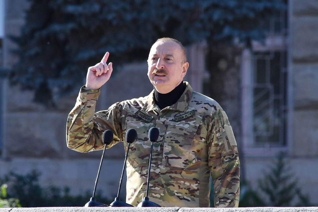 Azerbaycan ordusunun 19 Eylül'de düzenlenen terörle mücadele operasyonunun ardından silahlı Ermeni güçlerinden temizlenen Hankendi'de İkinci Karabağ Savaşı’nın zaferinin kutlandığı Zafer Günü çerçevesinde askeri geçit düzenlendi. Hankendi'deki şehir meydanında gerçekleştirilen törene katılan Azerbaycan Cumhurbaşkanı İlham Aliyev konuşma yaptı. Üç yıl önce Karabağ'ın tacı Şuşa şehrinin işgalcilerden kurtarıldığını belirten Aliyev, “Şuşa’nın kurtarılmasından bir gün sonra düşman ordusu teslim oldu ve beyaz bayrağı kaldırdı. Böylece İkinci Karabağ Savaşı Azerbaycan devletinin tam zaferiyle sonuçlandı. Bu tarihi bir olaydır. Azerbaycan halkı uzun yıllardır işgal edilen topraklarımızın bir an önce işgalcilerden kurtarılmasını istiyordu. Biz ise her gün bu zafere ulaşmak için durmadan çalışıyorduk. Yirmi yıl önce hem seçim arifesinde, hem de yemin töreninde halkımıza, işgal altındaki toprakların her köşesinde Azerbaycan bayrağını dalgalandıracağımız günün geleceğine dair söz verdim. Hatırlıyorum, beş yıl önce Eylül 2018'de Bakü'nün Azadlık Meydanı'nda düzenlenen askeri geçit töreninde konuşurken, işgal altındaki tüm topraklarda Azerbaycan bayrağının göndere çekileceği günün geleceğini söylemiştim ve o gün geldi” dedi. Azerbaycan’a Zafer Günü’nü armağan eden Azerbaycan Silahlı Kuvvetleri’nin savaş alanında cesaret, kahramanlık ve fedakarlık göstererek düşmanı Ermenistan’ı Azerbaycan topraklarından kovduğunu vurgulayan Aliyev, “Bu büyük bir tarihi olaydır. Azerbaycan halkının asırlık tarihinde bu kadar parlak bir zafer bulunmuyor. Şuşa Harekatı, 44 günde yürüttüğümüz diğer askeri harekatlar, askerlerimizin yiğitliği bir kahramanlık destanıdır. Azerbaycan askerleri ve subayları, 44 gün içinde düşmanı savaş alanında mağlup ederek, şehirlerimizi ve köylerimizi işgalden kurtararak gerçek bir kahramanlık gösterdiler. Azerbaycan Silahlı Kuvvetleri’nin tek bir askeri bile savaş alanını terk etmedi. Bu, Azerbaycan halkının yılmaz ruhunu ve yüksek ahlaki niteliklerini bir kez daha tüm dünyaya göstermiştir” diye konuştu. “Ermenistan sözlerimi dinleseydi İkinci Karabağ Savaşı'na gerek kalmayacaktı”