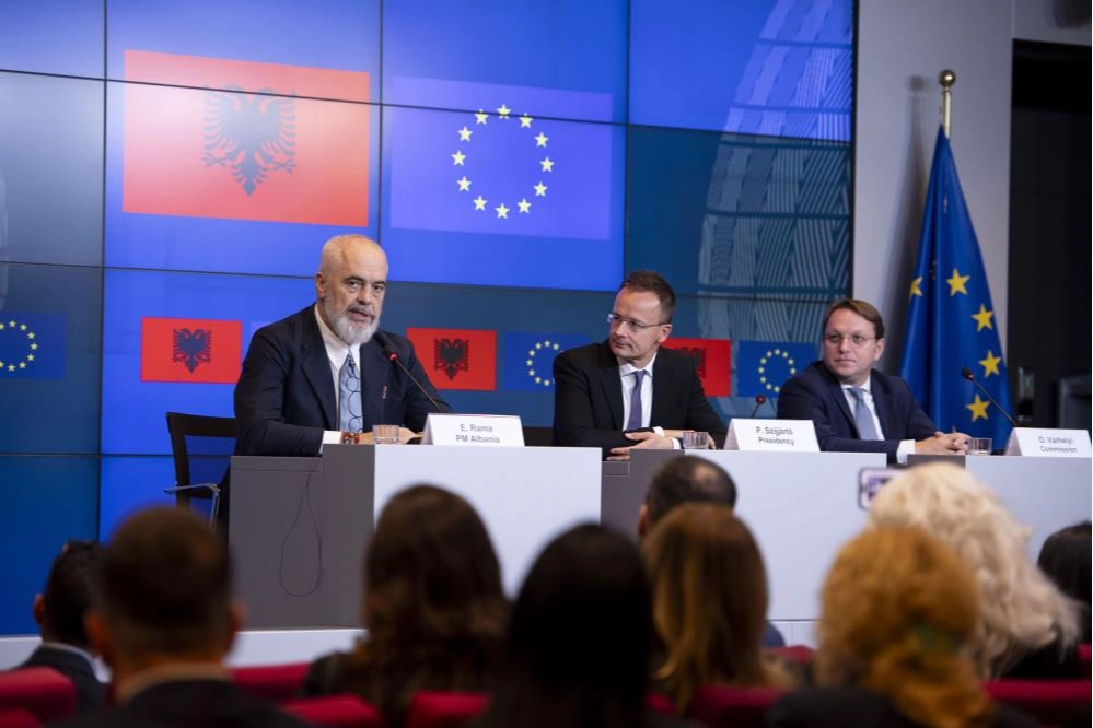 Macaristan Dışişleri Bakanı Peter Szijjarto toplantının ardından gerçekleştirilen basın toplantısında, “Geride bıraktığımız son bir buçuk saat kesinlikle tarihi bir zaman dilimi oldu. Arnavutluk ile katılım müzakerelerindeki ilk faslı açtık. Bu, aslında Arnavutluk'un mümkün olan en kısa sürede AB'ye katılmasını sağlamak amacıyla katılım müzakerelerinin başladığı anlamına geliyor. AB'nin Batı Balkanlar bölgesine yönelik genişlemesinin hızlandırılması meselesi, Macaristan'ın dönem başkanlığı gündeminin en üst sıralarında yer alıyor. AB'nin küresel siyasette ve ekonomide rekabet gücünü kaybettiğini ve ağırlığını yitirdiğini görebiliyoruz. Bu nedenle tazeliğe, yeni bir enerjiye, yeni bir itici güce ihtiyaç duyuyoruz. Batı Balkanlar bölgesine doğrudan bir komşu ve bölgeyi tanıyan bir ülke olarak bu tazelik ve ihtiyaç duyduğumuz yeni enerjinin Batı Balkanlar'dan geleceğini kesinlikle biliyoruz. Dolayısıyla AB'nin Batı Balkanlar'a genişlemesinin hızlandırılması, mutlak surette Avrupa'nın menfaatinedir. Diğer yandan, genişleme politikasının kredibilitesini korumak için acil adımlar atmamız gerekiyor. Biz genişleme politikasını, AB'nin en önemli politikalarından biri olarak görüyoruz” ifadelerini kullandı. Batı Balkanlar'da ülkelerin AB'ye üyelik sürecinde bekleme süresinin ortalama 15 yıla yükseldiğini vurgulayan Szijjarto, bunun "kabul edilemez" olduğunu ifade etti.