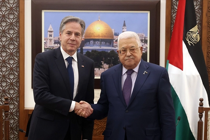Filistin Devlet Başkanlığı Ofisinden yapılan yazılı açıklamaya göre, Blinken ve Abbas, Batı Şeria'da bir araya geldi.