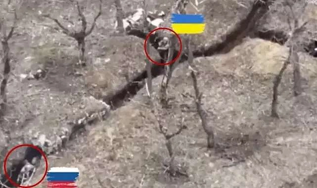 Birinci Dünya Savaşı'nı andıran süper savaşlarına sahne olan bölgede bir Ukraynalı askerin tek başına Rus güçlerine direndiği anlar drone kamerası ile saniye saniye görüntülendi.