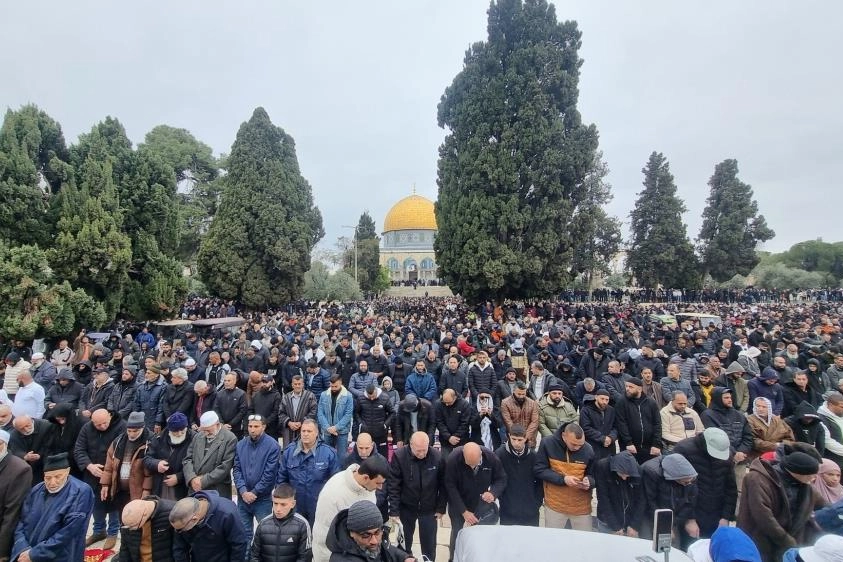 Filistinliler, Ramazan ayının ilk cuma namazını kılmak üzere işgal altındaki Doğu Kudüs'ün Eski Şehir bölgesinde bulunan Mescid-i Aksa'ya akın etti. İsrail'in kısıtlamaları nedeniyle Mescid-i Aksa'ya yalnızca 55 yaş üstü erkekler, 50 yaş üstü kadınlar ve 12 yaş altı çocukların girilmesine izin verildi. Filistinliler, İsrail güçlerinin oluşturduğu kontrol noktalarından geçerek Mescid-i Aksa'ya girdi. Mescid-i Aksa'ya girmesi engellenen Müslümanlar ise cuma namazını yakın noktalarda kılarken, İsrail kontrol noktalarında 3 bin silahlı güvenlik personeli görevlendirildi.