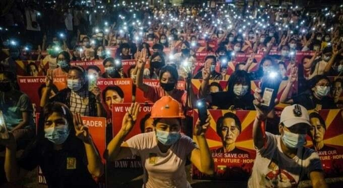 MYANMAR'DA ASKERİ DARBE Myanmar ordusu, 8 Kasım 2020 seçimlerinde hile yapıldığı iddialarının ortaya atılması ve ülkede siyasi gerilimin yükselmesinin ardından 1 Şubat'ta yönetime el koymuştu. Ordu, ülkenin fiili lideri ve Dışişleri Bakanı Aung San Suu Çii başta olmak üzere, pek çok yetkiliyi ve iktidar partisi yöneticisini gözaltına almış ve bir yıllığına olağanüstü hal ilan etmişti. Ülkede geniş katılımlı gösteriler sürerken, gözaltındaki üst düzey hükümet yetkililerinin askeri mahkemede yargılanmalarına devam ediliyor.