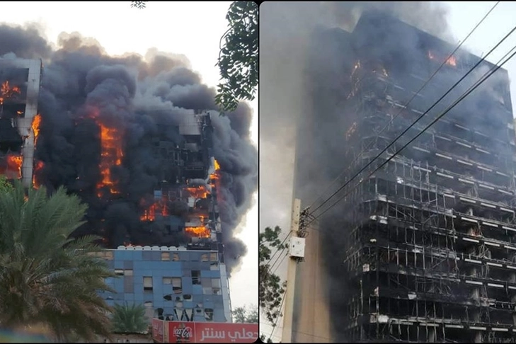 Sosyal medyada paylaşılan görüntülerde, Hartum'da vurulan Adalet Bakanlığı, başbakanlığa bağlı Sudan Standartlar ve Metroloji Teşkilatı ile Nil Petrol şirketi binalarından dumanların yükseldiği görüldü.