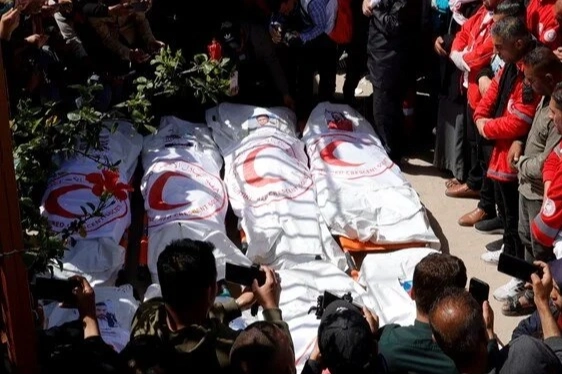 Cenazeleri birbiri ardına bulundu 23 Mart'ta Filistin Kızılayı ambulans ekipleri ve sivil savunma kurtarma görevlilerinin, Gazze'nin en güneydeki Refah'a girişine izin verilmişti. Cumartesi günü sağlıkçılara ait bir ceset bulundu.