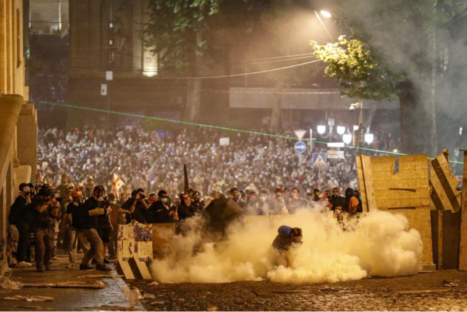 Gürcistan'da ifade özgürlüğünü kısıtlayacağı ve sivil toplum kuruluşlarını bastıracağı gerekçesiyle “Yabancı Etkinin Şeffaflığı” yasa tasarısına karşı devam eden protestolarda 8 gösterici yaralandı, 2 kişi gözaltına alındı.