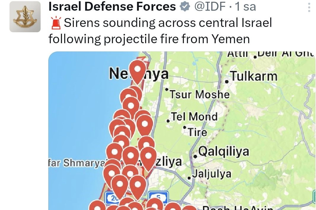 Yemen'den İsrail’e bir misilleme saldırısı daha gerçekleştirildi. İsrail Savunma Kuvvetleri’nden (IDF) yapılan açıklamada, Yemen'den fırlatılan bir füze nedeniyle ülkenin birçok bölgesinde sirenlerin çaldığı bildirildi. Füzenin hava savunma sistemi tarafından engellendiği kaydedilirken, İsrail basını saldırı nedeniyle herhangi bir hasar meydana gelmediğini duyurdu. Birçok bölgede sirenlerin çaldığı ve füzenin İsrail hava savunma sistemi tarafından engellendiği anlar amatör kameralar tarafından saniye saniye kaydedildi. Saldırıyı Yemen'deki İran destekli Husilerin gerçekleştirdiği değerlendiriliyor.