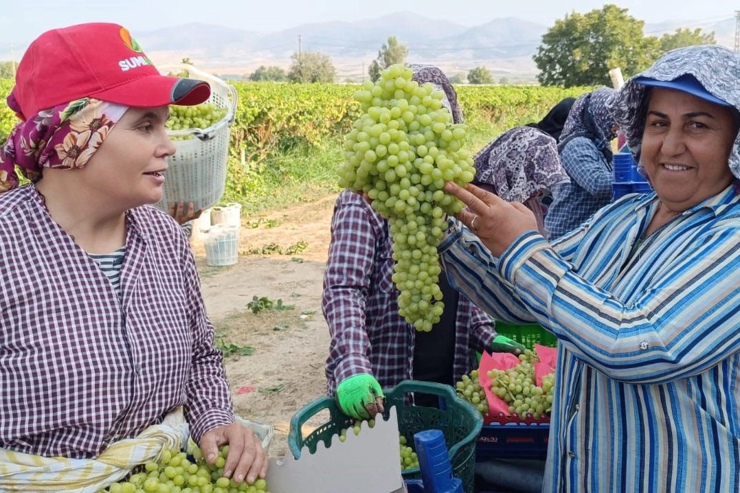 Bağdan kesilerek kasaya getirilen üzüm salkımı, ağırlığıyla adeta kasayı doldurdu. Kasaya yalnızca birkaç salkımla birlikte yerleştirilebilen üzüm, hasat işçilerini de ilgi odağı oldu.